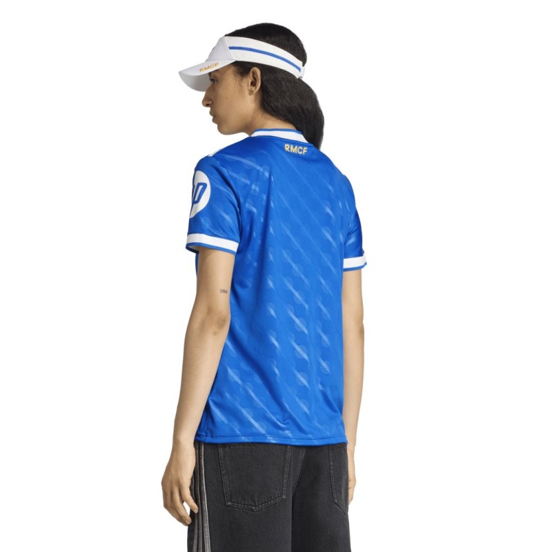 En casa, de azul. Esta tercera camiseta del Real Madrid viene en un tono que está muy cerca de los corazones de los madridistas y de los aficionados a las 3 Franjas. Un color clásico de adidas Originals y un sutil guiño a la identidad del Bernabéu, es el tono perfecto para celebrar la asociación futbolística por excelencia. Las 3 Franjas dentadas y el Trifolio añaden una herencia adidas adicional. AEROREADY, que controla la humedad, mantiene a los aficionados concentrados.