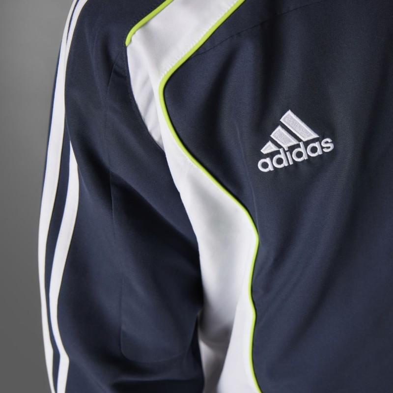 Inspirado en la moda futbolera de los años 2010, este track top del Real Madrid es una mirada al pasado reciente del deporte rey. Los llamativos bloques de color blanco inspirados en las famosas camisetas locales del club se combinan con intrincados detalles de ribete para crear un look único. El sutil escudo del club se combina con un logo adidas Badge of Sport en el pecho para demostrar a quién apoyas.
