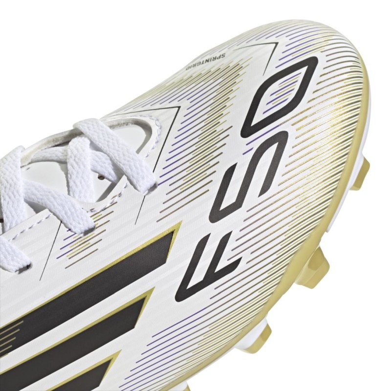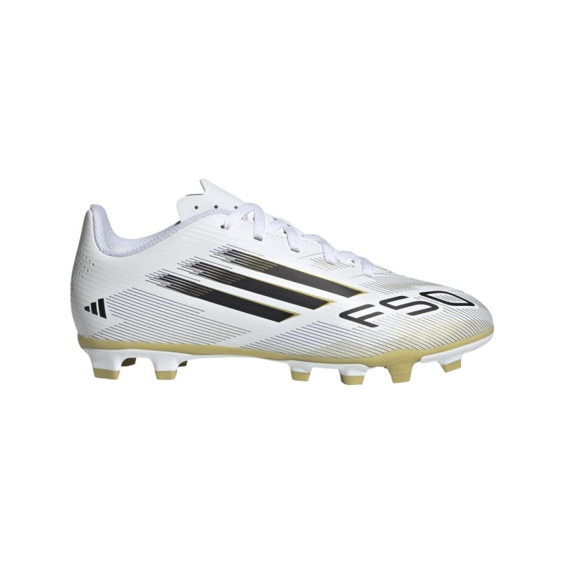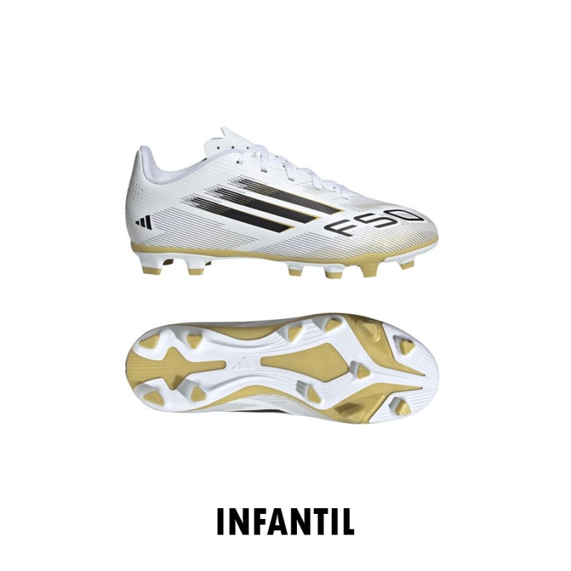 Encuentra tu rapidez para expresarte de verdad en el campo. Siente la adrenalina con los adidas F50, diseñados para la velocidad. Estos zapatos de fútbol Club para jóvenes te mantienen cómodo mientras estás en movimiento con un exterior de material sintético ligero y una lengüeta perforada. Dales la vuelta y encontrarás una suela que favorece el juego rápido en terreno firme y canchas de césped artificial.