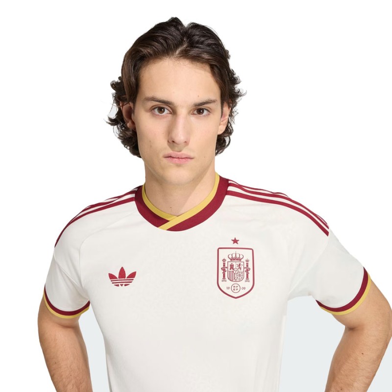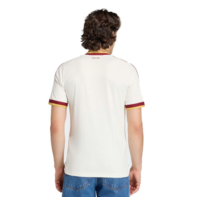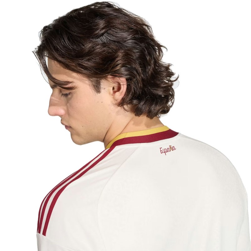 Un homenaje a la literatura española clásica, esta camiseta adidas de segunda equipación de España 26 destaca por su estampado repetivo, inspirado en manuscritos antiguos y páginas de libro desgastadas por el tiempo.