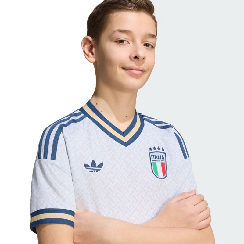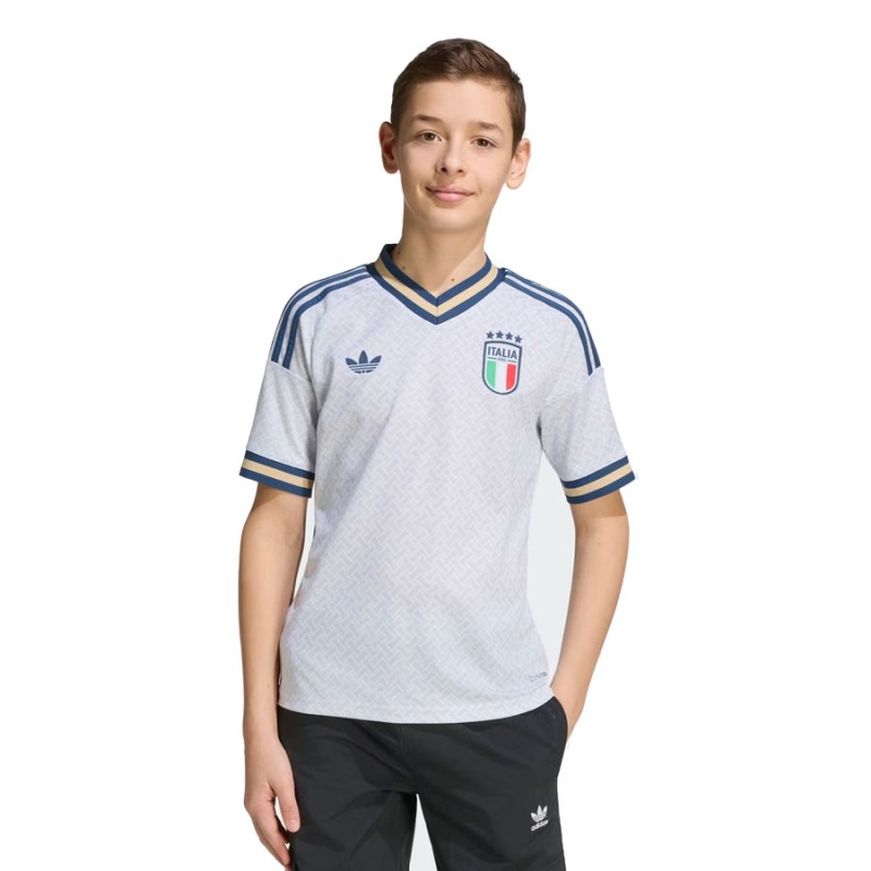 La camiseta visitante de Italia 26 está hecha para los jugadores jóvenes. Inspirada en la esencia del fútbol italiano y su celebración global, esta camiseta captura ele espíritu de los días de partido, fusionando legado con rendimiento moderno. Frescura. Transpirabilidad. Control. Climacool absorbe y dispersa el sudor para ofrecer un rendimiento fresco, seco y sin distracciones. La rápida liberación del sudor y la absorbencia del tejido ayudan a tu hijo a estar cómodo en todo momento. El diseño de ajuste ceñido ofrece un aspecto estilizado y favorece el movimiento, mientras que el cuello redondo le confiere un look clásico.