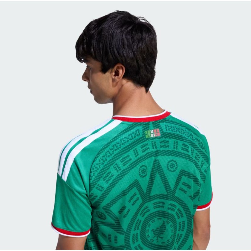 La estructura de tejido de punto doble aporta durabilidad y comodidad, mientras que el ajuste ceñido ofrece un aspecto estilizado y moderno. Además, el logo adidas y el escudo de la Selección Nacional de México bordados añaden un toque de autenticidad.