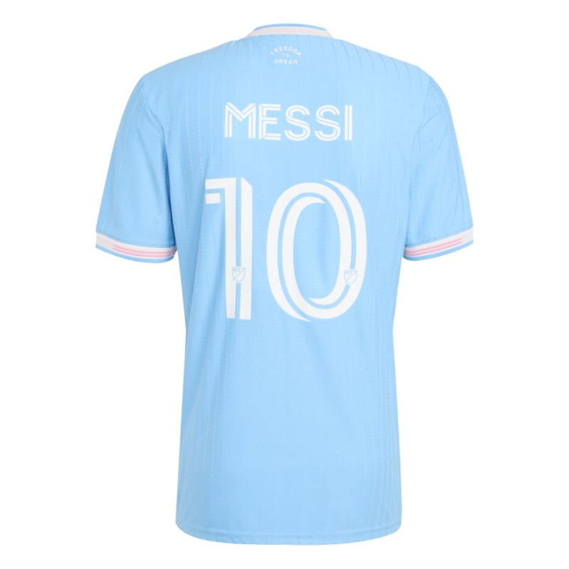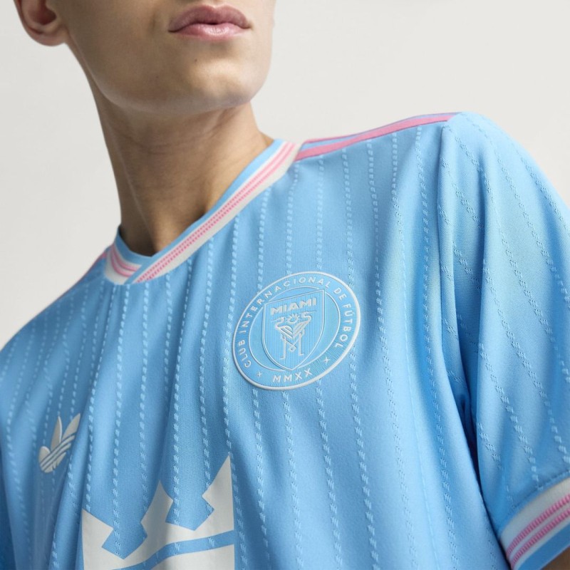 El vibrante espíritu de Miami y la belleza de su costa mundialmente famosa se unen en esta camiseta auténtica y especial del Inter Miami CF. Interrumpida únicamente por sutiles rayas y toques de rosa, la paleta de colores azul océano de esta tercera camiseta aporta una elegancia relajante. El escudo del club, el trébol de adidas y el nombre y número de Lionel Messi, aplicados mediante calor, le aportan un toque extra de atractivo. La tecnología AEROREADY con gestión de la humedad y una confección centrada en el rendimiento garantizan un fútbol fluido en la cancha.